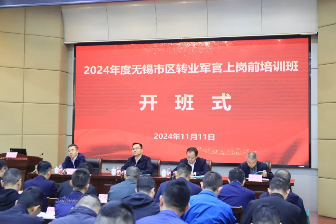 11月11日,2024年度无锡市区转业军官上岗前培训班在中心举行开班式。77名2024年度无锡市区转业军官参加为期2周的岗前培训。市委组织部副部长、市公务员局局长徐锋出席开班式并讲话,市退役军人事务局副局长张赟作开班动员,开班式由市退役军人事务局接受安置处处长陈晔主持。