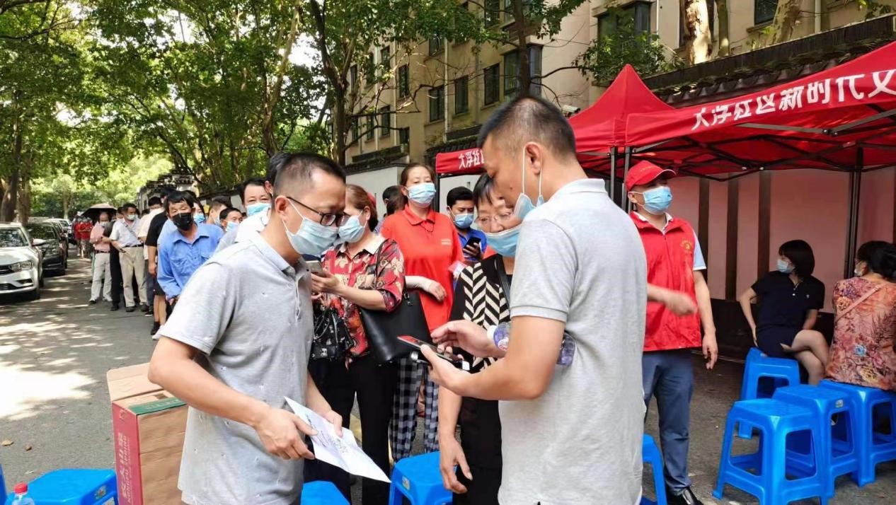 党员志愿者何巍参与大浮社区疫情防控应急演练,一大早他就来到现场,熟悉各个环节,了解所有流程,积极建言献策,主动申领任务。炎炎烈日下,维护现场秩序、帮助答疑释惑,汗水湿透了衣服、声音喊到沙哑......